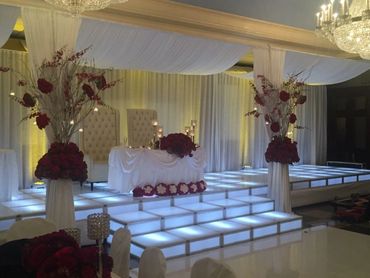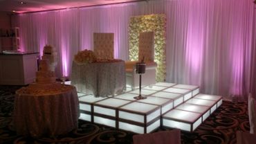 Our LED lit cubes are so versitile! They can be used as fully illuminated dance floors, DJ work stations, platforms for the Bride & Groom or whatever you can imagine. The cubes will add elegance and high energy to any affair. They are fully controlled whether you chose one color or multiple colors that change with the music.
